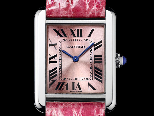 卡地亞TANK Solo系列粉色珠光面盤不鏽鋼腕錶