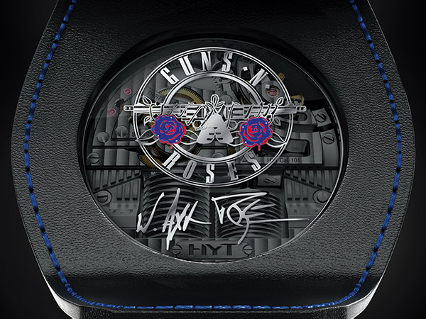 HYT在錶背刻上經典的「Guns N’ Roses」標誌,向搖滾傳奇致敬。在這之下,可看見Axl的簽名落在散發金屬質感的藍寶石水晶底蓋上。搭配經微噴砂處理的51毫米DLC鈦金屬錶殼。全球限量僅25枚的稀世之作即將於2016年12月正式登場。