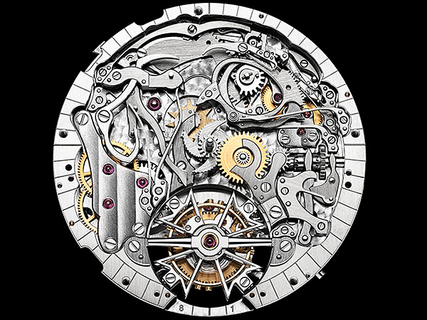 精密複雜的陀飛輪可抵消重力對時計的影響,從而提高走時精準度。而三問報時功能則是至高製錶藝術的象徵,同時也是最受推崇的複雜功能之一。
