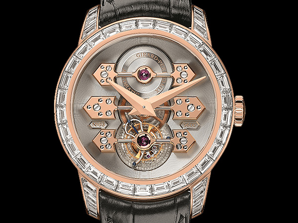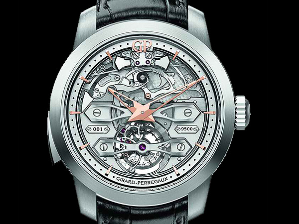 新款Neo Tourbillon將玫瑰金材質改為鈦金屬材質,與鈦橋愈加完美呼應,由245個零件組成的GP09400-0002自製機芯,配備微型自動盤,令機芯排列更加均勻有致,建議售價NT$$3,757,600,此款須預訂。