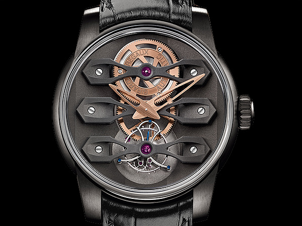 另一款全鈦金屬打造的GP芝柏表鈦金屬Neo Tourbillon鈦橋陀飛輪腕錶,同樣值得大書特書。此表款在2014年最初以玫瑰金材質面世,利用原創三金橋陀飛輪結構為基礎,但三金橋改為鈦金屬材質,並且將最初的箭型設計改為鏤空曲面,讓傳唱已久的經典,進一步幻換為新世代制表標竿。