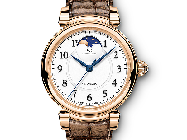 達文西月相自動腕錶36(型號IW459306/IW459307/IW459308)錶殼直徑36毫米,具有月相盈虧顯示複雜功能、半圓形錶冠並採用珍貴物料,專為鍾情於奢華氣質與精臻技術的錶迷而設計。階梯式內圈對鍍銀錶盤以及作為這一系列典型設計特徵的圓形造型加以突顯,並為這款防水性能深達30米的女性設計腕錶予以補充,Santoni鱷魚皮錶帶的眾多色彩更為腕錶錦上添花。