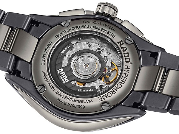 全新HyperChrome 皓星系列電漿高科技陶瓷Match Point限量計時碼錶,透過Rado瑞士雷達表的標誌性材質—高科技陶瓷再次成為眾人矚目的焦點。為了實現材質獨一無二的金屬外觀,已成型的白色高科技陶瓷零件被置於等離子煉爐中,在20,000°C高溫下,活化的氣體改變陶瓷的結構,散發獨特的金屬光澤。