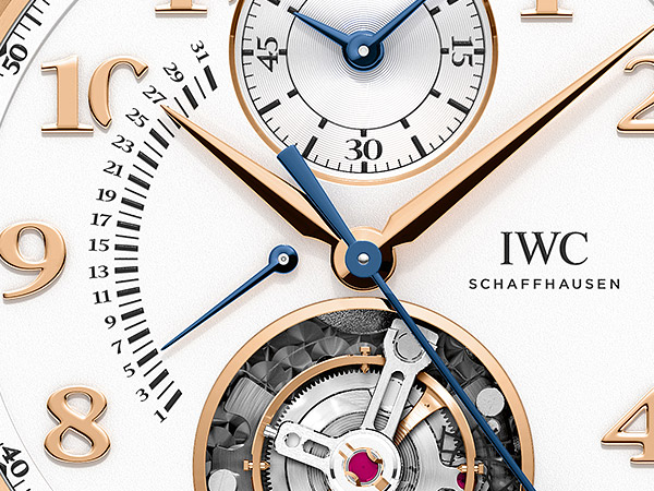小面盤在紅金款式(型號:IW392101)和不鏽鋼款式(型號:IW392103)中分別選用鍍銀和岩灰色配色。紅金錶款的錶殼、錶耳、錶冠以及按鈕採用純18K紅金材質。深棕色Santoni 鱷魚皮錶帶同樣以金色錶扣牢固固定在腕間。在搭載黑色鱷魚皮錶帶的精鋼錶款中,岩灰色計時器具有銠質邊緣,對作為重要設計項目的圓形造型再次予以突顯。