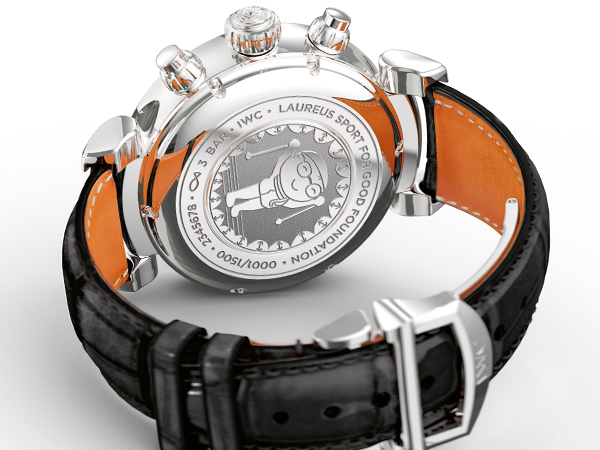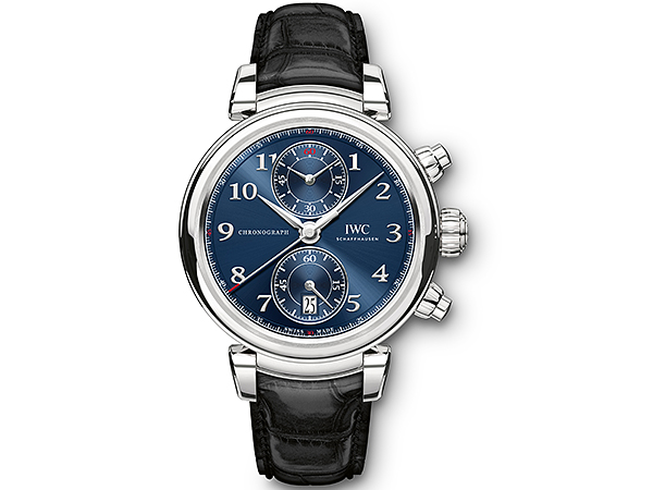 達文西計時腕錶“ 勞倫斯體育公益基金會”特別版( 型號:IW393402)直徑42 毫米,搭配藍色面盤。經過全新開發的可移動式錶耳,配合可彎曲的錶耳兩角確保黑色Santoni鱷魚皮錶帶可完美貼合手腕。這款精鋼計時腕錶在小面盤中顯示所測量的小時和分鐘,如同指標腕錶的顯示功能一樣。計時秒鐘則一如既往地通過中央指標顯示。