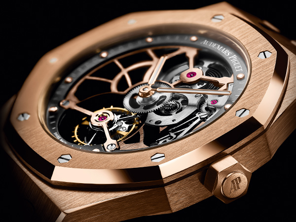愛彼的原創皇家橡樹超薄陀飛輪腕錶於2012年面世,為皇家橡樹系列誕生40週年劃下歷史性標誌。此超薄時計最初僅發行鉑金錶款,隨後則於2016年推出了黃金錶款。