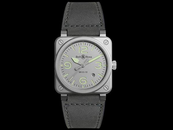 BR03-92 Horograph和BR03-92 Horolum的設計遵循工業美學的原則。其簡單的線條,基於方形錶殼,強調必 要的元素。每個當代鐘錶有著極其清晰的字元,無一不令人想到航空領域。BR03-92 Horograph讓我們想起機場航站樓的時鐘。