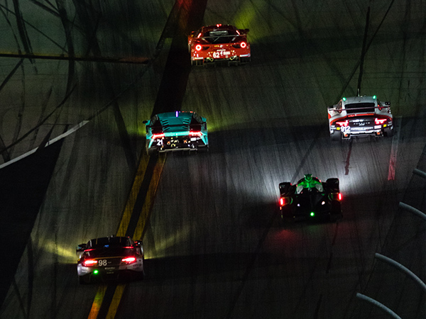 到了星期日清晨,賽道狀況仍持續嚴峻,以致前導車必須在場上多待了兩個小時,充分說明了這場耐力測試的真正嚴苛考驗。今年參賽的賽車都是這個時代最先進的產物,對車隊來說,每一圈都是把他們推向極限的寶貴學習經驗。距離比賽結束前三個小時,賽道終於變乾,但P組和GTLM組仍然無法確定領先車隊中誰才會是冠軍。