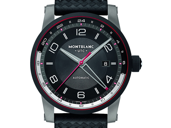 面盤:黑色面盤,夜光阿拉伯數字時標,煙灰色夜光時針、分針和第二時區指針