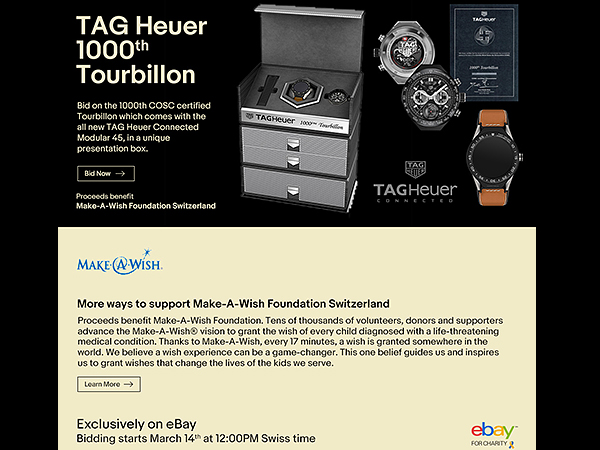 LVMH集團腕錶部門總裁兼TAG HEUER執行長Jean-Claude Biver趁著在瑞士Brunnen舉行智能腕錶新品發表會,宣布了這項新消息。為了慶祝這個對品牌非常具有紀念意義的破千紀錄,Jean-Claude Biver決定透過eBay在3月14至29日,將第1,000枚獲得COSC精密計時器認證的陀飛輪計時機芯拍賣出去。