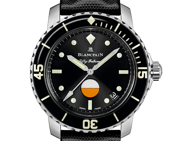寶鉑Blancpain重新演繹風靡五十年代的經典錶款,推出五十噚系列MIL-SPEC復刻腕錶,配備濕度指示計。五十噚系列的偉大誕生,歸功於身後兩大傳承的融合:一方面來自時任寶鉑CEO讓-雅克.費希特先生(Mr. Jean-Jacques Fiechter),他是品牌1950-1980年間的掌舵人,本身更是一名狂熱的潛水大師。