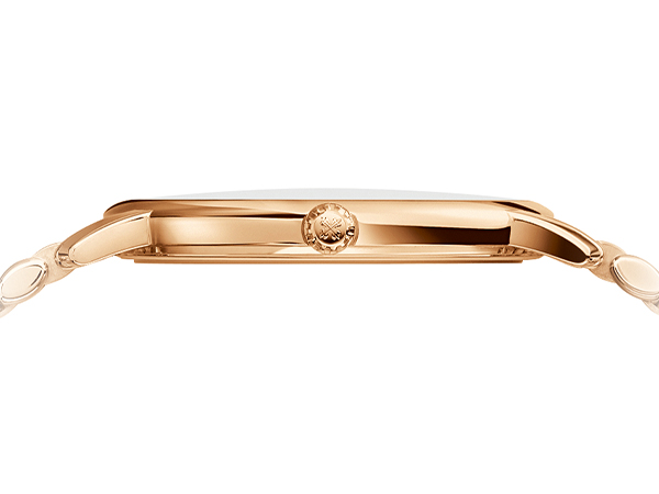 240 SQU 機芯藏於Calatrava渾圓玫瑰金錶殼內。錶殼已縮減至成為幼框模樣,讓目光能夠聚焦於機芯之上。腕錶採用大型寶石玻璃鏡面及錶殼底蓋,確保全錶效果剔透及提供最大保護。防水深度三巴(三十米)。腕錶搭配18K玫瑰金錶鍊,柔軟熨貼,以摺疊扣穩固腕上。