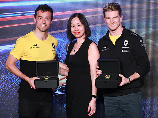 BELL & ROSS北亞洲總經理朱璇華小姐也表達了對兩位車手-Jolyon Palmer及Nico Hulkenberg的信心:“BELL & ROSS一直致力於為專業人士打造最高品質時計,並且不斷以最高熱情挑戰自我,為大家帶來超凡腕錶。相信BR-X1 RS17鏤空計時碼錶定能助力兩位優秀車手在比賽中為車隊贏得出色成績。”作為專為賽車手設計的計時工具,BELL & ROSS全新RS17系列腕表薈萃尖端賽車科技、機械技術及先進物料,卓爾不凡,體現了品牌的熱情執著和卓越追求!
