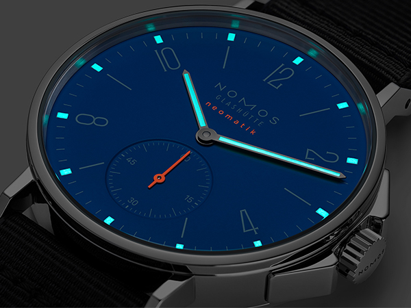 NOMOS Aqua系列腕錶共有16款,大小不一,男女款式皆有,4種色彩引人注目。全新Aqua系列延續neomatik腕錶系列的成功。源於Club與Ahoi系列的核心款式,一系列走時精準、防水性能出色的腕錶現已問世,堅固可靠,何時何地都美觀大方。