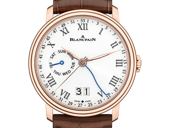 新款Villeret經典系列腕錶,設有大日曆雙視窗,週數刻度沿面盤外圈均勻排布,以Villeret系列經典的藍鋼蛇形指針指示。同時,星期顯示以小面盤形式置於九點位置,這一設計既給人視覺上的平衡美,又增強了腕錶的可讀性。當星期顯示週一取代週日時,藍鋼蛇形指針隨之跳動,完成週數的遞進。週數顯示圈擁有數位1到53,將一年的53個星期全域展示給佩戴者。
