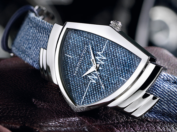 如何重新演繹經典錶款,使其貼近現代?答案是採用經典的材質。牛仔布在Ventura腕錶誕生的50年代十分流行,至今歷久不衰。Ventura腕錶亦將之應用到錶帶上,其拋光精鋼錶殼中,亦具備3D立體打印的牛仔褲紋飾錶盤,平添一份現代感。