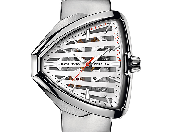 Ventura腕錶於1957年面世時,獲公認為甚具未來風格作品。最後一款腕錶為展現同樣格調,採用超現代的鏤空設計,細意欣賞之下就發現其形狀隱約與「貓王」所用的麥克風互相呼應。