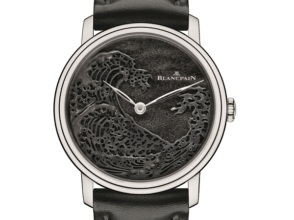 靈感來自葛飾北齋的神奈川巨浪, BLANCPAIN 「藝術大師」工作室首次採用新穎且貼切的墨西哥銀曜石,同時融入受人尊崇並為業界頂級獎項「日內瓦鐘錶大賞」肯定的BLANCPAIN獨有工藝——日本 Rokushō 綠灰溶液鈍化處理工序。