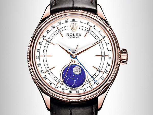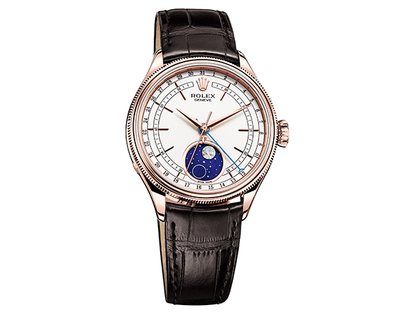 勞力士ROLEX Cellini系列推出新款—Cellini Moonphase(徹利尼月相型)腕錶,錶面可顯示月盈月虧的變化。新款Cellini Moonphase,錶殼直徑39 毫米,以18ct永恆玫瑰金鑄造。
