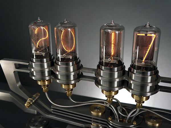 真空管的每一根玻璃管皆充滿以氖氣為主的低壓氣體,其中裝有金屬網狀的陽極與分層疊放的數字狀陰極;這些陰極必須分別安裝,才能夠個別顯示0到9等數字。組裝真空管時須連接電路與數條管路,形成多位數陣列,組裝完成後多運用於電腦、時鐘與頻率計數器,雖然這些工具終究都被實用性更高、成本更低,但欠缺魅力的發光二極體(LED)所逐漸取代。全新Nixie Machine II代表的是原創Nixie Machine的進一步革新。不論是外觀設計、構造,或是由Dalibor Farny所打造的六根真空管細緻的表面加工,每一寸細節都經手工悉心雕琢。