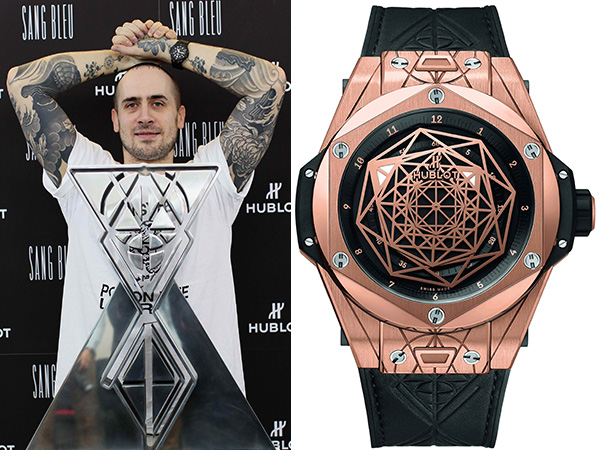 Maxime Büchi – Sang Bleu:Maxime Büchi是瑞士設計師及刺青藝術家,同時也是獨立多媒體藝術創作平台《Sang Bleu》的總監之一。2016年4月,他創作Hublot Big Bang Sang Bleu腕錶,採用他設計的獨特紋身圖案,象徵追求完美及圖形崇拜。而這次將展出品牌全新合作腕錶Hublot Big Bang Sang Bleu,以及他的玻璃及鋼鐵雕塑作品。