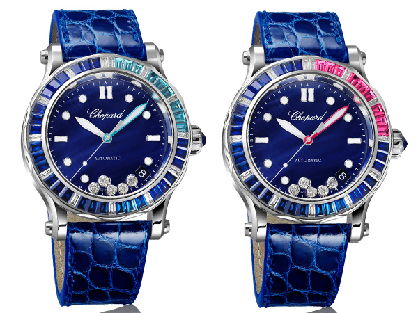 Happy Ocean亦推出光華閃爍之珠寶錶款,以18K白金材質打造,錶款防水深度100米,搭配海軍藍色珍珠母貝面盤及鑲嵌鑽石、藍寶石和紅寶石或鑲嵌鑽石、藍寶石和托帕石的固定錶圈,為此系列增添華麗變奏的色彩,並搭配藍色鱷魚皮錶帶及同色調NATO錶帶。