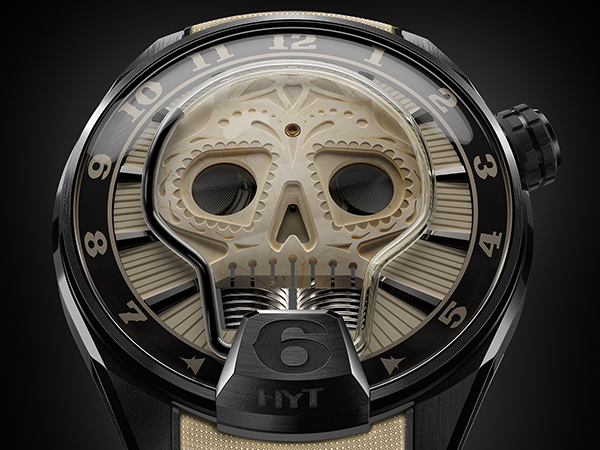 “HYT的骷髏系列融入Memento Mori的概念,反映著墨西哥亡靈節Dia de los Muertos的文化,其中在時光流逝的慶祝聖餐中對於死亡以出生同樣的方式進行慶祝,”HYT公司的首席執行官Grégory Dourde回憶道,“我們將生命和時間獨特的流動方式與我們的流體技術和生物材料製成的錶盤雕塑並且進行結合,從而展現出HYT更與眾不同的一面,挑戰我們的極限。Skull Vida腕表正是源於這個兼有眾長且全面的理念。”