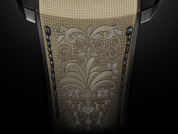 以西伯利亞猛獁象牙作為錶盤的材質,必須經過長達數月的穩定期。骷髏型以及花紋,是由經過特別訓練的工匠細心操作雕刻而成。五枚腕表的錶盤因猛獁象牙的特質,呈現出不同的紋理和設計。和其他HYT骷髏系列的腕表一樣,Skull Vida的左眼顯示秒鐘,右眼顯示動力儲存。