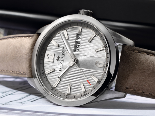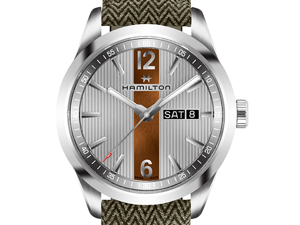 另有三款國際風格的腕錶,必定獲得最講求設計的大膽男士所青睞。各枚新作均採用高雅配色和獨特材質搭配,備有白色或雙色錶盤,包括時尚藍與都市灰,3點鐘位置設有極為實用的星期和日期顯示窗。所有錶款皆備有Hamilton Broadway標誌性的紅色尖端秒針,以及形似摩天大廈的小時刻度,其上帶有Super-LumiNova®夜光塗層,讓佩戴者在漆黑中仍可方便讀時。