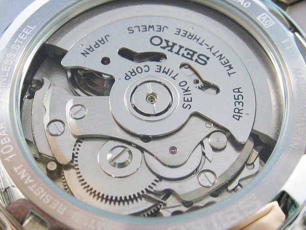 在本款腕錶上,精工首度使用了4R35自動機芯。就外表來看,4R35與常見的6R15非常類似,但是自動盤沒有6R15的日內瓦波紋處理,而其餘的結構大致相同。都具有可手動上鍊、停秒裝置、23顆紅寶石軸承與每小時振頻21,600次的規格。不過廠方所透露的動力儲存只有41小時,比6R15略短,加上每日的配戴的運作誤差值在+45與-35之間,略遜於6R15機芯;從上述的細小差異來看,的確符合廠方原本差異化的機芯等級設計。而精工向來都會在機芯上使用一組以上的避震器,本枚機芯也分別在三番車與擒縱輪上,多加了兩個Diashock避震器,延續7s26系列的耐操特性,同時減少軸承內潤滑油的揮發。