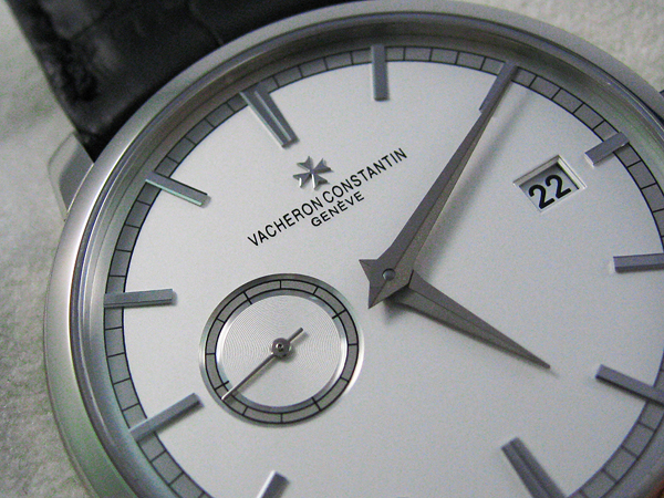 而本只腕錶的功能也相當簡單,除了時間指示之外,就是三點鐘位置的日期窗,也是消費者最常使用的功能。錶冠採用壓入式設計,可直接手動上鍊,替發條盒補充能量;拉開錶冠的後第一段,可以快調日期功能,而拉至第二段則可調整時間,同時具有停秒功能。而新款的傳承系列Patrimony Traditionnelle問世,是廠方為了向1930、40、和50年代的錶款致敬,因此面盤的概念,是來自於昔日的簡約設計風格;但是錶廠在面盤與指針方面,做了更細緻的調整。首先是多面梯形時標,使配戴者在任何角度之下,都能輕易的讀取時間;另外使用亮面與霧面的dauphine式指針,也是本款腕錶的特色之一,所花費的製作成本,也相對的提高許多。