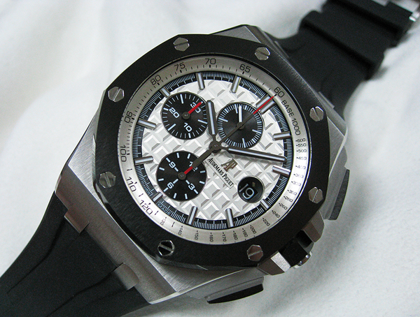 自從1972年愛彼發表Royal Oak皇家橡樹以來,本系列一直是愛彼產量最大的款式,因此從兩針錶款、計時碼錶,一直到萬年曆以及大複雜錶款,這些都是皇家橡樹陸續所衍生出的錶款。在1993年,愛彼錶廠推出Royal Oak Offshore皇家橡樹離岸型系列之後,皇家橡樹系列便具有兩種不同風格的錶款;其中皇家橡樹離岸型的計時碼錶,更是深受全世界錶迷的喜愛,在瑞士頂級錶廠所推出的運動型腕錶當中,算是一支獨秀。隨著廠方不斷推出的限量款與特殊材質版本,在2011年,愛彼發表全新的皇家橡樹離岸型計時碼錶。筆者相信這是愛彼累積多年來的技術與心得,除了使用自製的Cal.3126/3840自動計時機芯之外;最主要的改變就在於錶殼外型,廠方加大了錶殼的直徑、並採用陶瓷錶圈設計以及全新的計時按把結構。