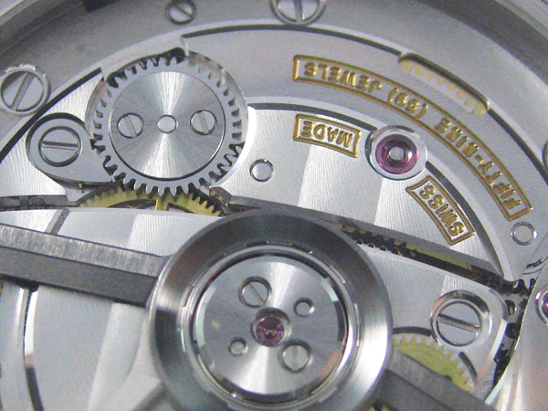 從這張圖片來看,我們可以發現自動盤使用高科技的陶瓷滾珠軸承,也是目前高級錶廠所使用的配備;而隱藏於右側夾板下方的雙向自動上鍊系統,結構堅固且耐用度極佳,可與K金自動盤形成完美的組合。此外,愛彼屬於瑞士的頂級錶廠,因此機芯皆以華麗的日內瓦波紋與魚鱗紋來打磨修飾,而且每一個夾板都有倒角拋光修飾;紅寶石的裝配孔緣也施以鑽石亮面打磨,齒輪的輪臂同樣使用倒角打磨,完全具備頂級機芯的要求。由於本枚機芯採用附加計時模組的結構,因此操作質感與計時的精確度,更加重要。之前筆者操作過數款使用計時模組機芯的錶款,其中有一兩款,按把的操作質感其差無比,或是計時秒針偷跑的情況過於嚴重。因此,當筆者首次操作愛彼自製的Cal.3126/3840計時機芯,不論是操作按把的舒適度,或是指針計時的精確度,都有絕佳的表現,讓筆者對於這枚機芯具有高度的信心。而本次的新款皇家橡樹離岸型計時碼錶,在筆者實際操作過後,這枚機芯依舊有良好的表現;結合具有充足動力的60小時發條盒,以及大型的可調式砝碼擺輪,相信會是本類型計時機芯的最佳典範。