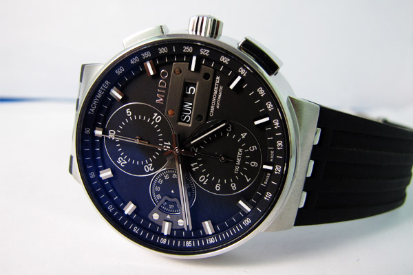 All Dial Chronograph Chronometer在設計上的另一個特別部分在於秒針,MIDO捨棄使用小秒針,而以一個小秒盤來取代。雖然很小一片,但對於機芯的結構來說,指示盤的重量,以及製作的平衡,都是額外的問題。
