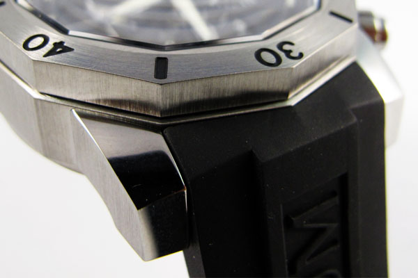 海軍上將標準的12邊型,承襲著一貫的風格。搭配旋轉錶圈,可以方便潛水者計算氧氣存量。