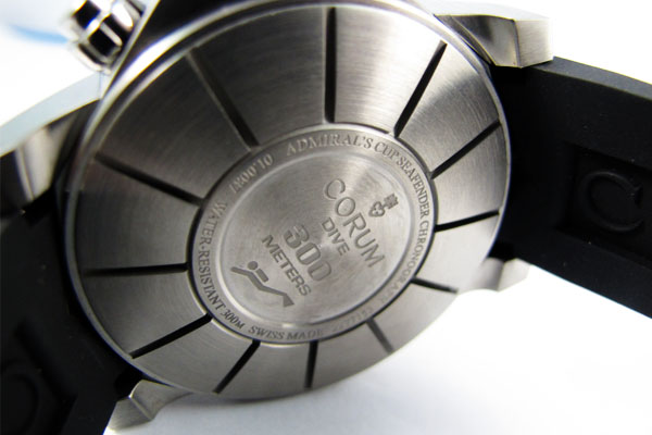 緊密的旋入式錶底蓋鐫刻著潛水人圖案,也確保錶款防水機制的完整。排水溝渠的設計,象徵錶款的防水性能,實際上是沒太大用處的。