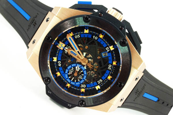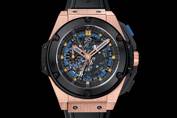 直徑48mm King Gold錶殼╱時間指示,日期窗,計時碼錶功能╱HUB4245自動上鍊機芯,42小時動力儲存╱藍寶石水晶鏡面,透明底蓋╱防水100米╱限量250只╱參考價:請恰代理商