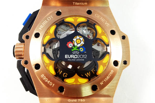 題外話,這次的UEFA歐洲盃指定錶款,HUBLOT選在烏克蘭基輔市的奧林匹克體育場首度發表。選在這這個場地,是因為此處正是2012歐冠的決賽場地,想想看如果代表著烏克蘭與波蘭的兩款限定錶,能夠伴隨著所代表的國家進入決賽,豈不美哉!可惜,兩個主辦國雖然能夠直接晉級,但還是在首輪分組決賽中就被刷下來了。而其中,烏克蘭就是在這個球場上敗給了瑞典!這款以烏克蘭為主題的歐冠腕錶,無緣陪著球隊征戰到最後。