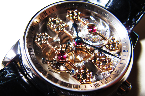 而一如前言說的,鏤空錶像A片,越空越好,說的是腕錶鏤空之後的透光性。在不影響機械結構,並維持美感的前提下,能夠透的越空,便表示腕錶的製作越高明。而這只三金橋,不用多說,請看吧!幾乎可說是沒有一點贅肉,整個濃纖合度到剛剛好。