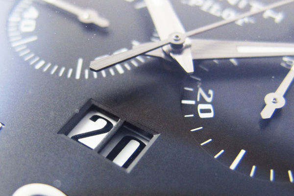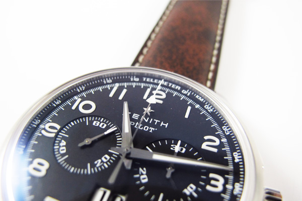 少一個積算盤,多了面盤的簡鍊,讓6點鐘位置的大日期窗有更充裕的空間。ZENITH這款Pilot大日期計時碼錶的設計相當的合理。