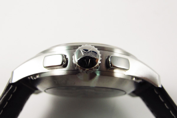 Pilot計時碼錶,僅保留中央秒針與3點鐘位置的30分鐘積算盤,9點鐘位置則是小秒針。少了通常計時碼錶會有的12小時積算盤,面盤顯得更簡潔。