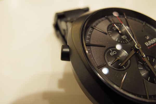 鍊帶部分也是採用高科技陶瓷材質,貫徹了品牌對於這自家研發材質的自信與堅持(不過底蓋的部分則是黑色PVD的不鏽鋼材質)。而霧面的設計,個人是覺得,比一般常見的亮面陶瓷多了些沈靜的質感。就像是,比起亮黑的腳踏車,我覺得消光黑的車架質感更好。