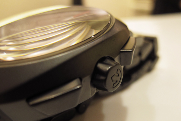 不過雖說如此,但由於這枚機芯是以算是當前最泛用的7750所改造的,為了符合經濟效益,7750的計時機制採用的是槓桿凸輪操控機制,結構簡單直接而且耐用,造價相對低廉也是優點之一。而以此延續成的7770,也是採槓桿凸輪操控。好處相同,但挑個毛病就是如此機制需要比較大的力氣去壓按,彷彿用傳統底片相機拍照,按快門時甚至可以感受到相機內反光鏡動作的回饋。而這款D-Star 高科技陶瓷雙追針計時腕錶,在操作計時機制時,簡單的說吧….總覺得如果一天多按幾次,拇指的肌肉很容易就會因為不斷用力而變得發達。