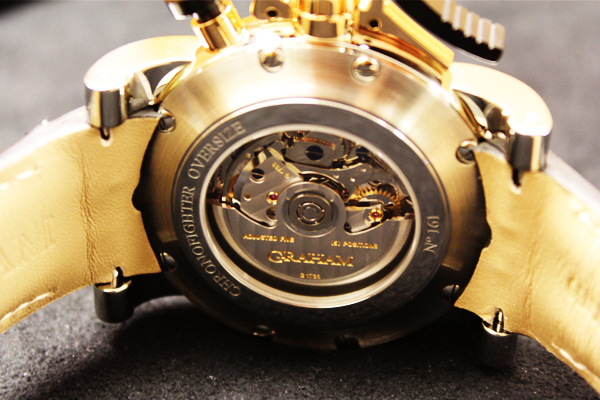 許多時候,為了遷就設計,所影響到的不僅只是外在,連內在都會受到影響。最好的例子便是MB&F,一連串的HM系列,展現前所未有的腕錶造型,而為了遷就那些造型,MB&F連帶必須開發出前所未見的機芯形式,才能讓腕錶得以運作。而這只Chronofighter也是。為了這個搶眼的計時按把,GRAHAM也必須修改機芯本身計時結構。GRAHAM將計時碼錶的啟動與停止的按把與錶冠結合,而歸零按把則獨立於11點鐘位置。如此設計,按壓啟動時,比較不會被卡住。