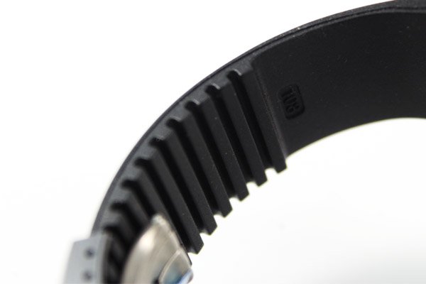 而橡膠錶帶內層有做刻紋設計,主要目的是讓錶帶能夠依照佩帶者的手腕粗細進行調整。