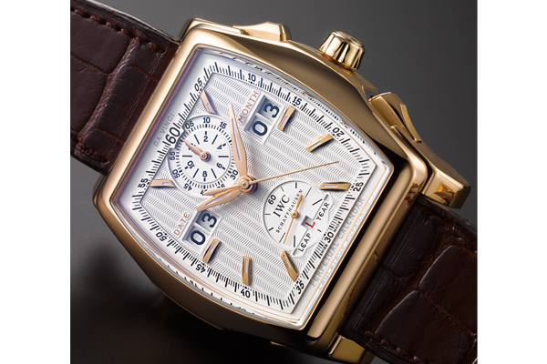 由於它的日期及月份皆採用雙碼大視窗設計,因此必然耗去機芯曆象層極大面積;此外,因為它是瞬跳結構,因此作動時耗用能量極大,而IWC的解決方案就是附加上額外動力儲存裝置,機構類似逆動指示,透過蝸形齒結構,每天更換日期時,就有一部分動力被彈簧儲存起來,在月底時蝸形齒跳回原位,帶動月份視窗向前跳一格。