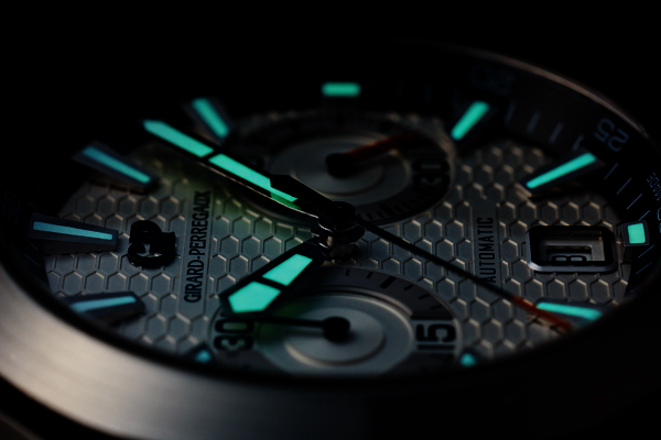 回歸錶款的實用,全新海鷹計時碼的立體時標以及加大的指針都有清晰的夜光塗料,在視線昏暗不清時,能夠維持腕錶判讀的清晰。至於計時機制的刻度與指針則並未塗有夜光塗層。理由很簡單,因為幾乎不會有人會在視線不清時還需要操作計時碼錶的。