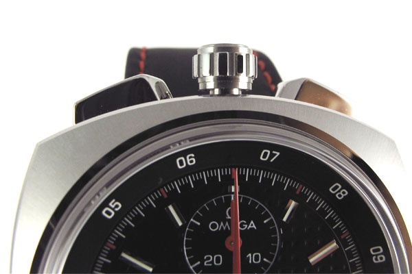 錶殼12點鐘位置才是錶冠與計時按把,中間錶冠用以調校時間,轉半圈旋出錶冠後後即可轉動調整,收回去時也只要壓按之後轉半圈即可,使用上相當便利。當然,已經習慣旋入式錶冠這種紮實感的人不免會想「這樣防水妥當嗎?」。答案是無庸置疑的,就跟旋入錶冠一樣,只要好好轉上錶冠,基本上以OMEGA的品質,該都不會有什麼問題。再者,Bullhead也並非定位在潛水錶,能否防水到萬無一失?好像也不是腕錶首要問題。