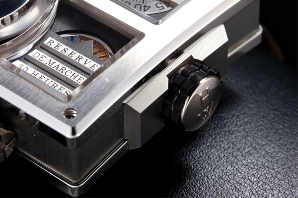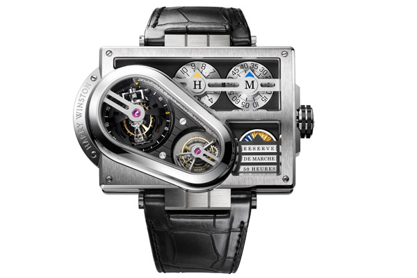 外觀與傳統手錶大相涇庭,主體是長方形加上突出的半圓;雖然在瑞士法語區設計製作,但外觀卻有明顯的美國風格,然而它也不是HARRY WINSTON珠寶設計的經典風格,而是1970年代以降的安迪沃荷式的藝術商品化普普風及科幻龐克(Cyberpunk)的結合體,在極度的機械化外觀下,似乎嗅不到一絲人味,只有佩戴在手腕上以後,它獨特的風格才會在肌膚的溫潤下顯現出來;它就像是用液態金屬打造的魔鬼終結者。