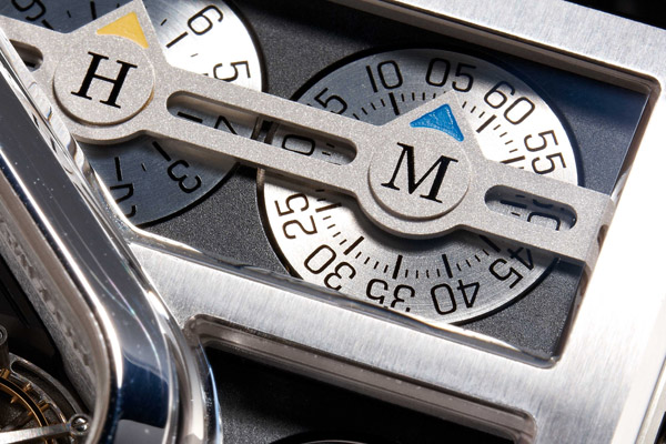 小時及分鐘指示顯然不是史詩陀飛輪的重點,在面盤上佔的位置不大,但仍舊精雕細琢。